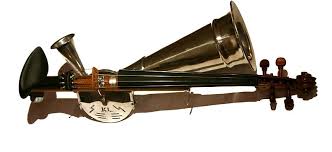 From Work On The Mechanical Sound-Box Of The Record Player. This Bowed Stringed Instrument Is Formed Of A Solid Cylindrical Body Designed of 2 Items Of Half-Round Mahogany, Associate Atomic Number 13 Shoulder Rest, Diaphragm And Horn, Ancient Bowed Stringed Instrument Neck, Peg box, And Scroll Of Maple, And A Dark Red-Brown